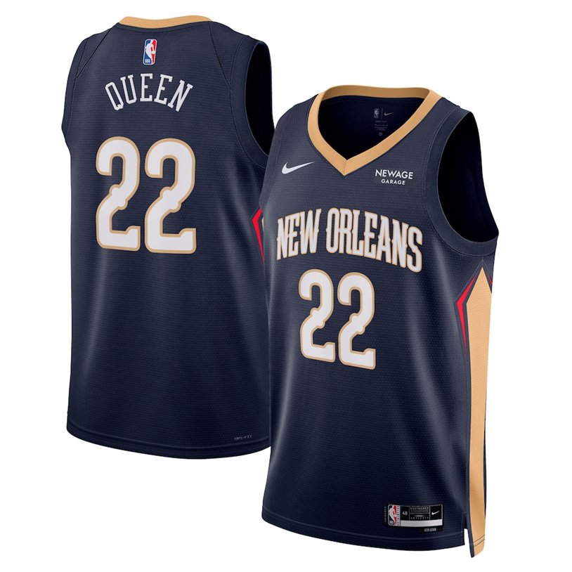 Sports High Quality Basketball Derik Queen #22 New Orleans Pelicans Icon Edition Match Jersey – Navy